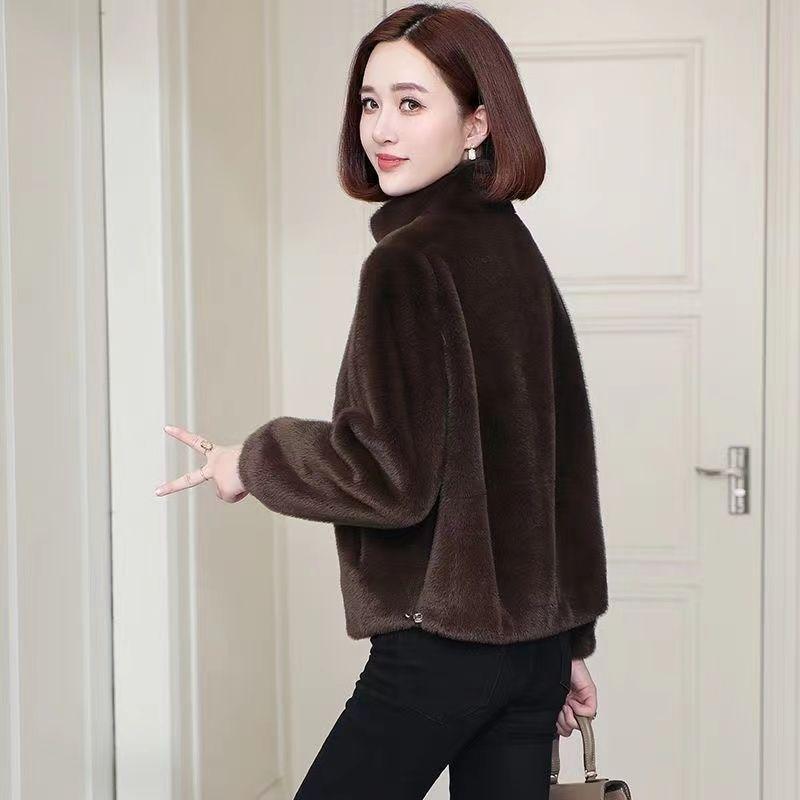 Gold mink jacket women's short imitation fur winter fur integrated stand-up collar waist fashion warm thickened coat