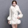 Winter neue Damenlederjacke mit Kunstfell, Damenmittel und lang, Kragen aus Kunstfuchsfell, schlanker Mantel