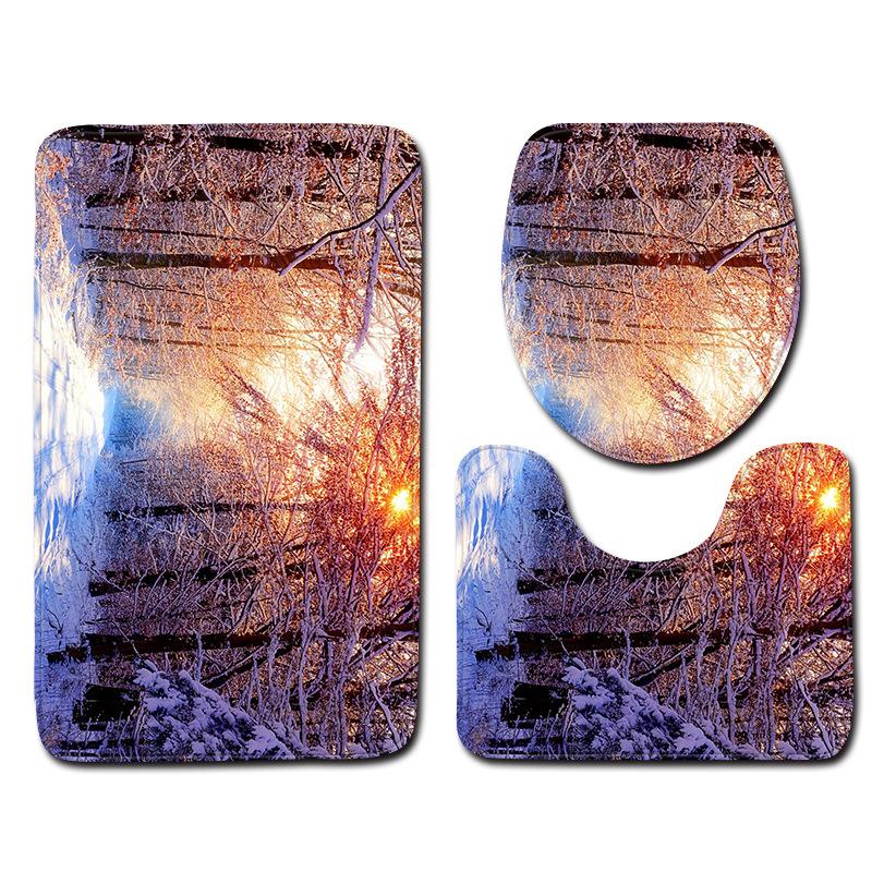 3D Snow Bathroom Toilet Three-Piece Floor Mat Door Mat Bathroom Carpet