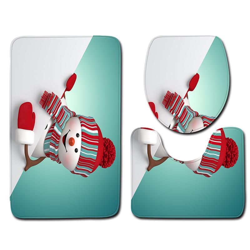 3D Schneemann Badezimmer Toilette Dreiteiliger Bodenmatten Türvorleger Badezimmerteppich
