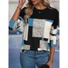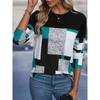 Frühlings- und Herbst-Damen-T-Shirt mit 3D-Druck, schlichtem Karomuster, modischen langen Ärmeln, Rundhalsausschnitt, regulärem Schnitt, Oberteil für Feiertage und Wochenenden