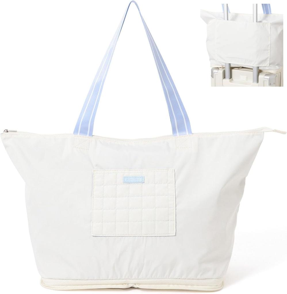 Francfranc Pop Stitch Quilt Carry-On Tote, Ivory, Water-Repellent, Expandable, Lightweight, Large Capacity, Travel Bag, Boston Bag