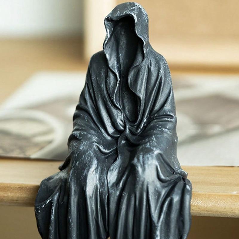 1 Stück Gothic Schwarze Kapuzenstatue - Harz Exzentrische Dekorative Figur, Geeignet für Bücherregale, Schreibtische, Gärten, Höfe, Autos, Kleine Ornamente