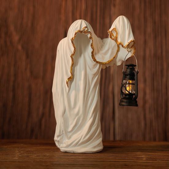 Yousheng Geisterzauberer Figur Halloween Geisterstatue mit leuchtender Laterne Vintage Gotische Geisterskulptur für Innen Kaminregal Schrank Dekoration