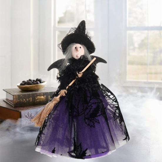 Einzigartige Designelemente: Geschmückt mit einem Gazerock, Fledermausflügeln und einem Besen, versprüht diese Hexenpuppe einen mystischen Charme, der die Halloween-Atmosphäre in Ihrem Zuhause oder Büro verstärkt.