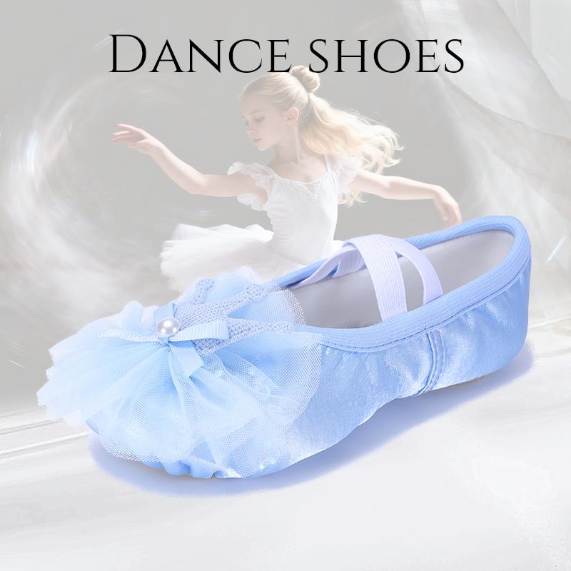 Kindertanzschuhe Satin Katzenpfotenschuhe Mädchen Atmungsaktive Ballett Bühnenperformance Schuhe