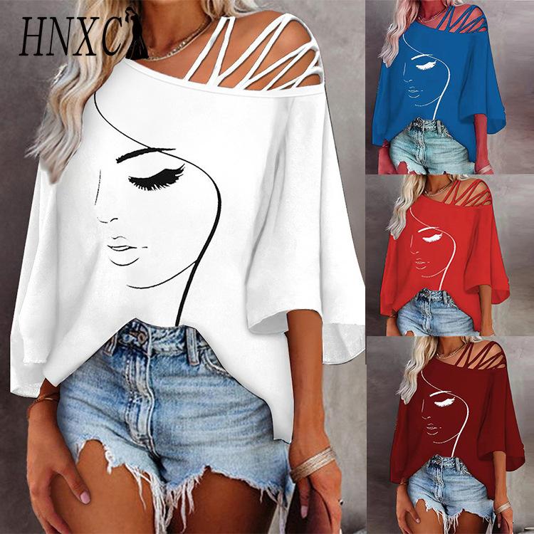 HNXC Frühling Sommer Mode Patchwork Locker Schräghals Lässiges Oberteil Bedrucktes T-Shirt