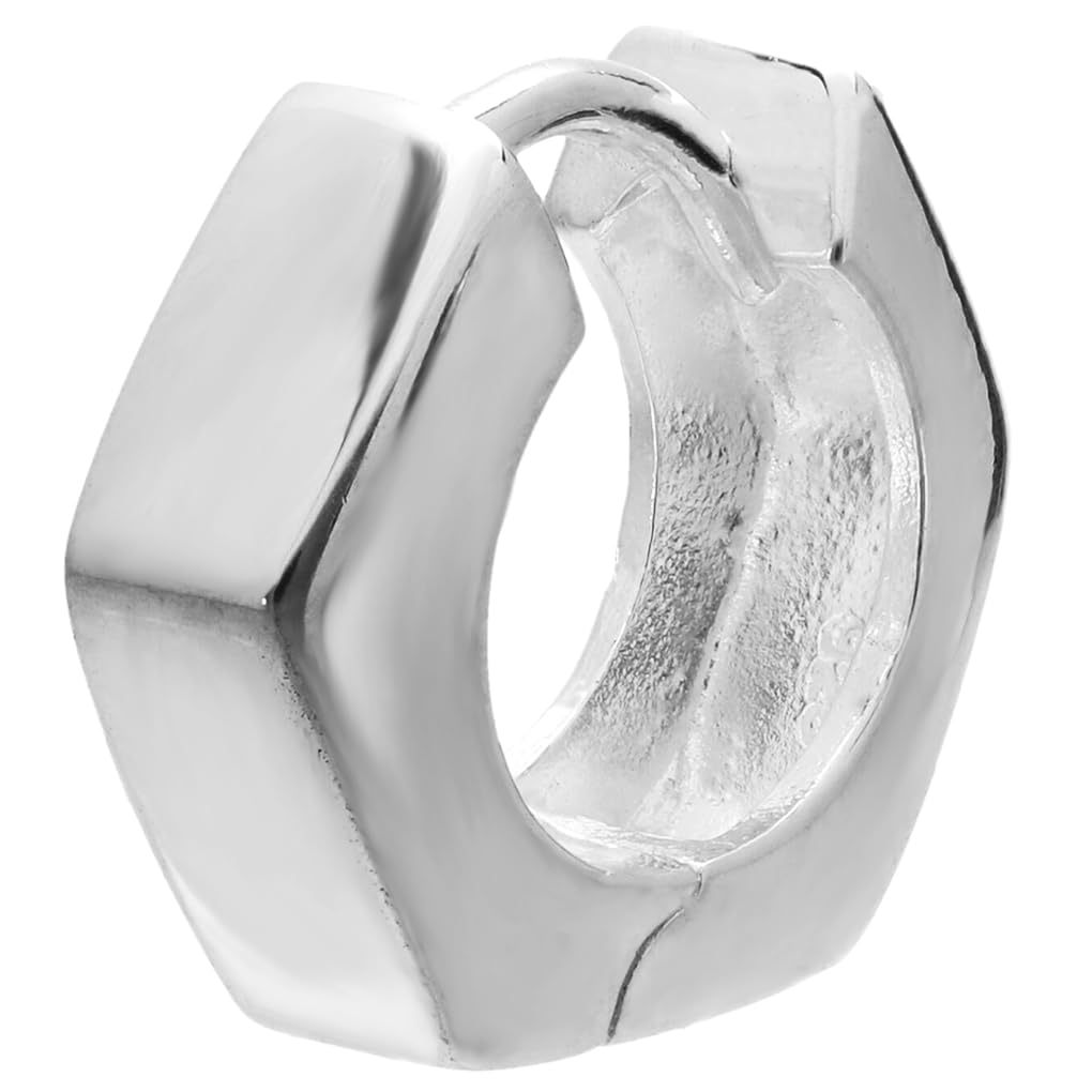 [Shinjuku Gin no Kura] Hexagon Hoop Earrings, 925 Sterling Silver, Single Earring, Hexagonal Geometric Pattern, Simple, Catchless