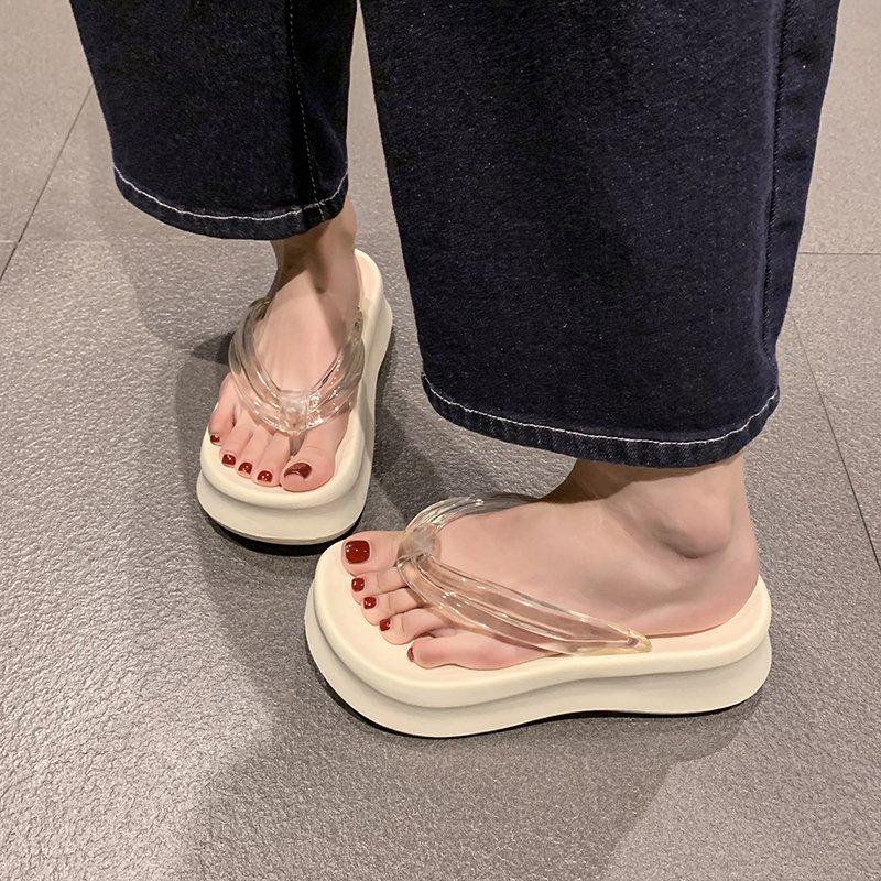 Modische Schuhe Damen Gummi Flip Flops Slipper Flache Plateau Pantoletten Schiefer Damen Strand Transparent Absatz Weich Hawaiianisch Sommer Sabot Casu