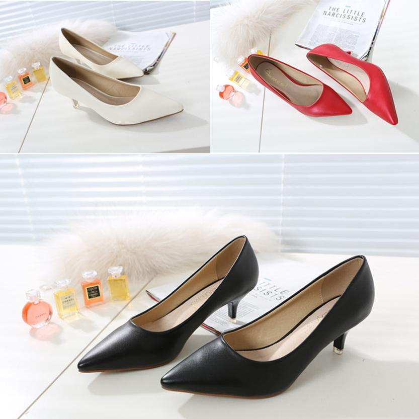 Mode OL Stil Lederpumps Damen Einfarbige Schuhe Niedrige Dünne Absätze Einzelne Schuhe 5cm Hohe Absätze Damen Büroarbeit Kleid Keilabsatzpumps