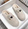 Mode Winter Warme Plüsch Pantoletten Damen Ein Riemen Fell Hausschuhe Gemütliche Baumwollschuhe Frau Ballerinas Zehenbedeckt Vlies Pantoletten Femme Wolle Pantuflas