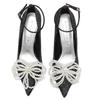 Mode Elegant String Perle Schleife Dekorative Pumps Damen Luxus Spitzzehe Kristall Knöchelschnalle Designer Schuh Mode Hochzeit Brautschuh