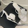Mode Elegant Blume Schmalband Design Marke Damen Hausschuhe Sommer Offene Zehe Sexy Dünner Absatz Pantoletten Bequemer Satin Partyschuh