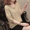Gestricktes Kurzarm-Top Damen Mesh Spitze Dünn Studentin Frühling Herbst Shirt Locker Halbarm Überwurf