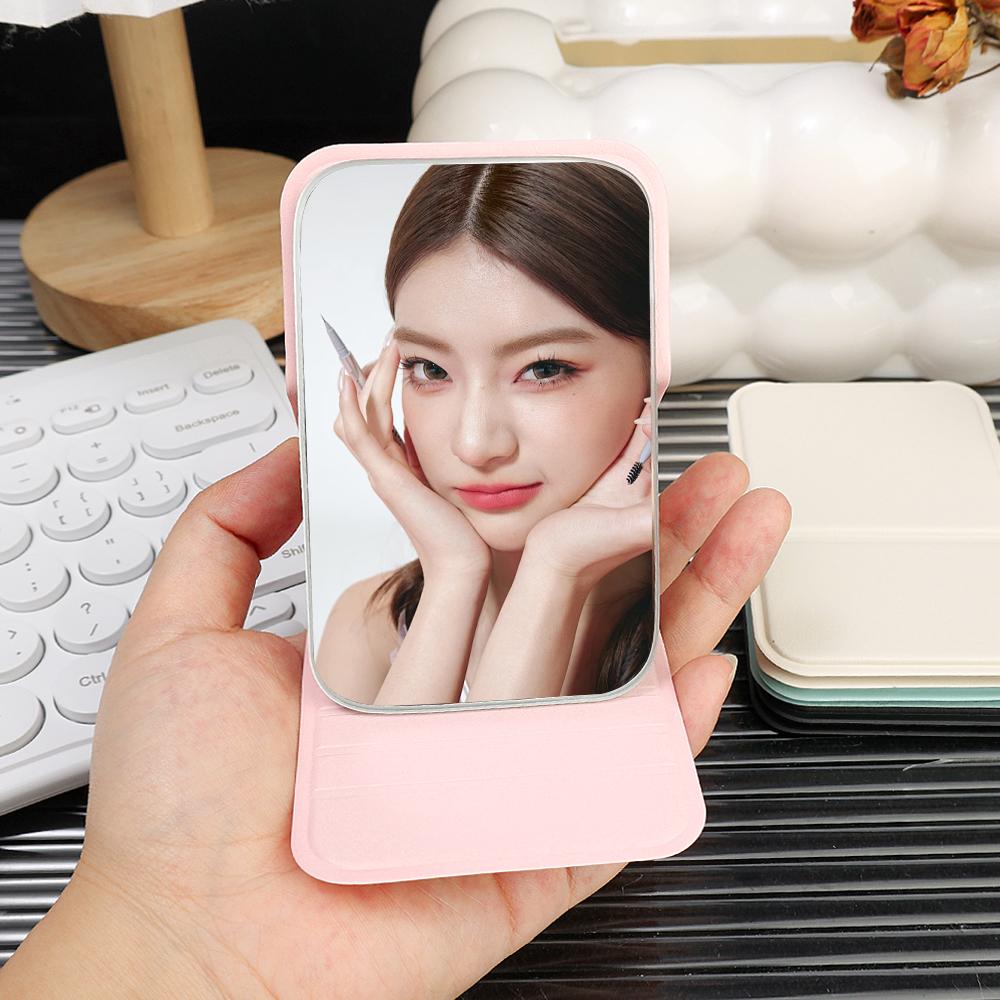 1PC Mini Folding Makeup Mirror Solid Color PU Leather Simple Portable Handheld Desktop Makeup Mirror High Definition Vanity Tool