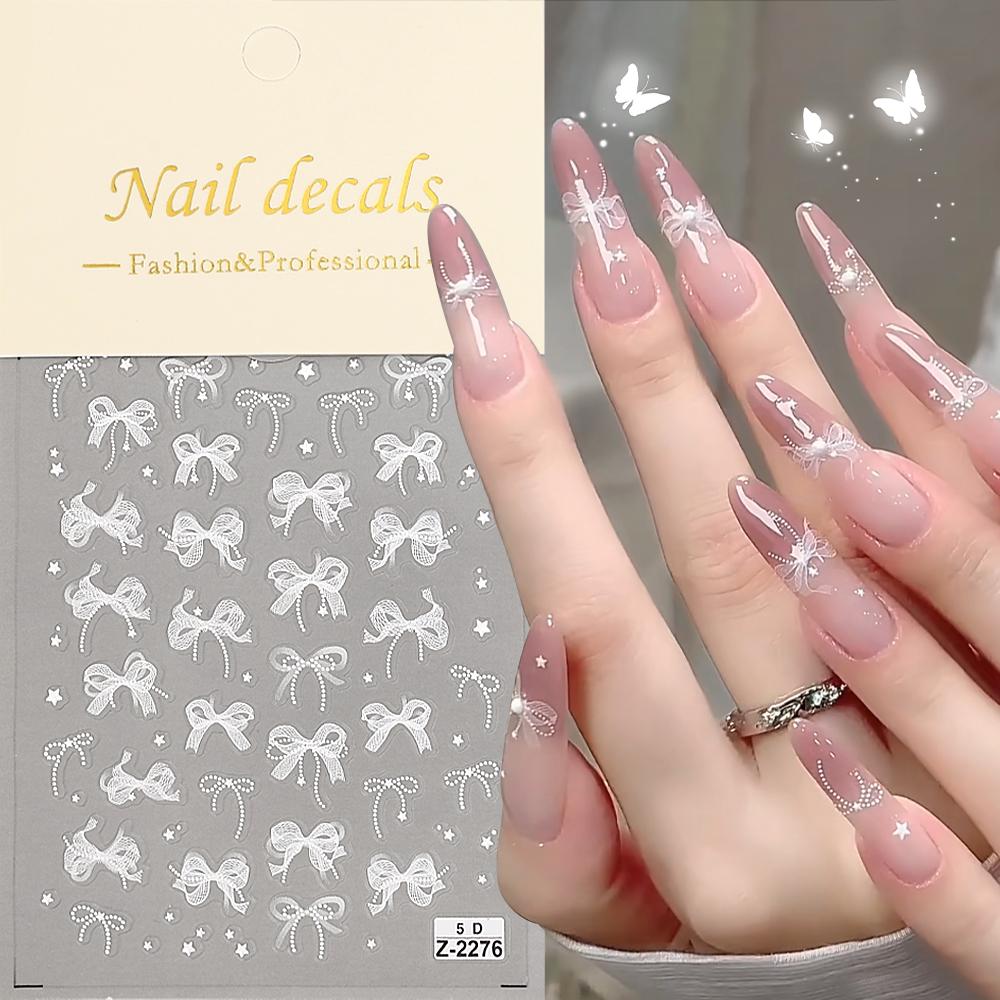 5D Relief Tüll Schleife Design Nagelkunst Aufkleber Selbstklebend DIY Weiße Schleife Abziehbilder Süß Cool Ins Maniküre Modellierungsdekorationen