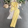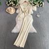 Frühling Herbst Damen Elegant Gestrickter Pullover Büro Zweiteiler V-Ausschnitt 3D Blumen Pullover Tops und Langer Maxi Etuirock Outfits