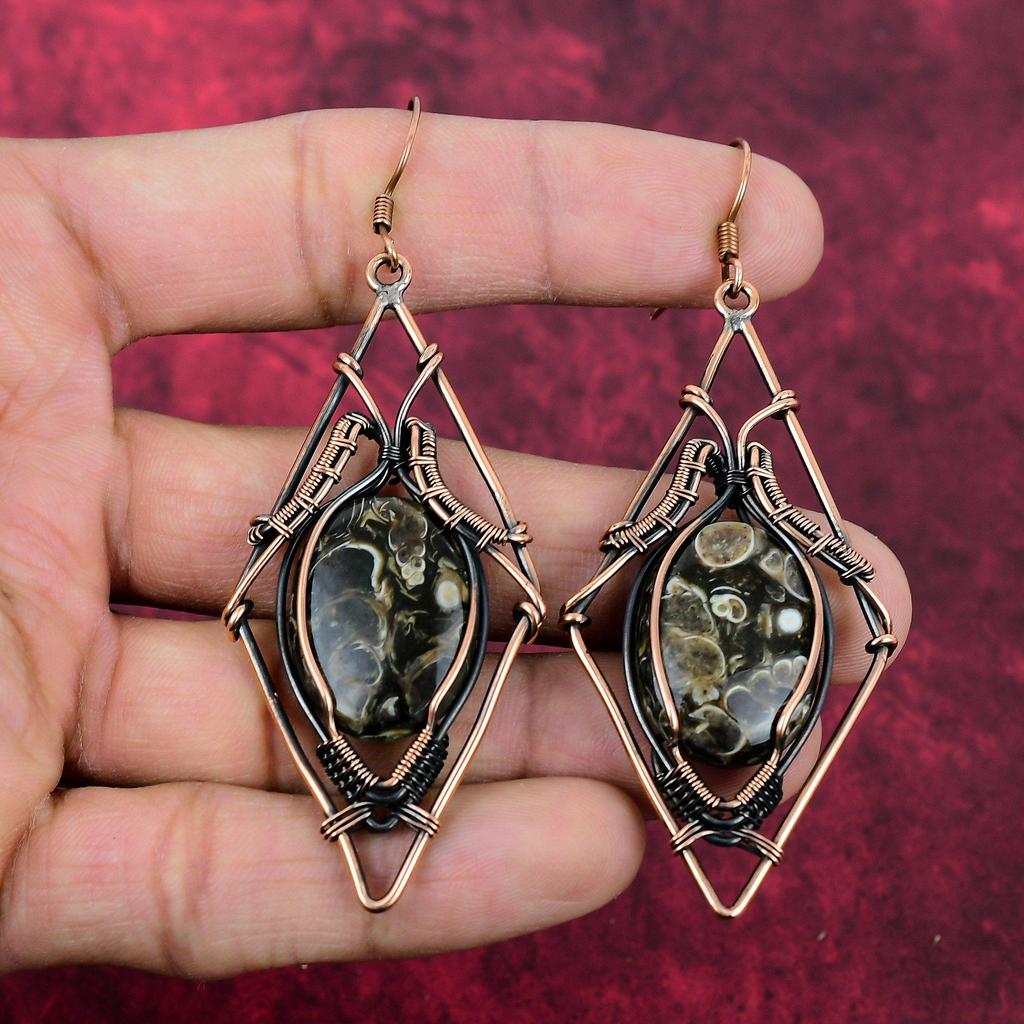 Turritella-Achat Ohrring Kupferdraht umwickelt Edelstein Schmuck Handgemachter Ohrring Kupferdraht-Wicklung Ohrring Geschenke für Mama Designer Schmuck