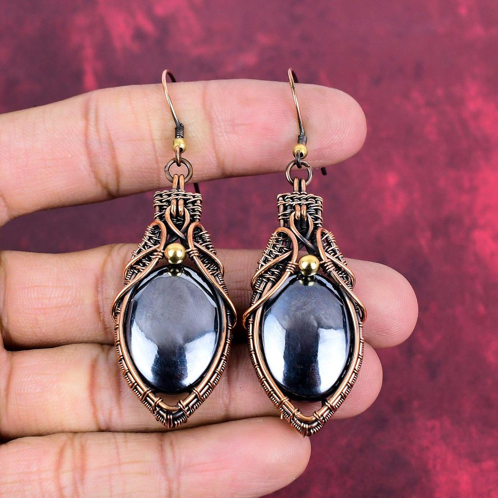 Shungite Earring Copper Wire Wrapped Earring Original Gemstone Earring Handmade Earrings Wire Wrapped Jewelry Gifts For Wife Dangle Earrings
