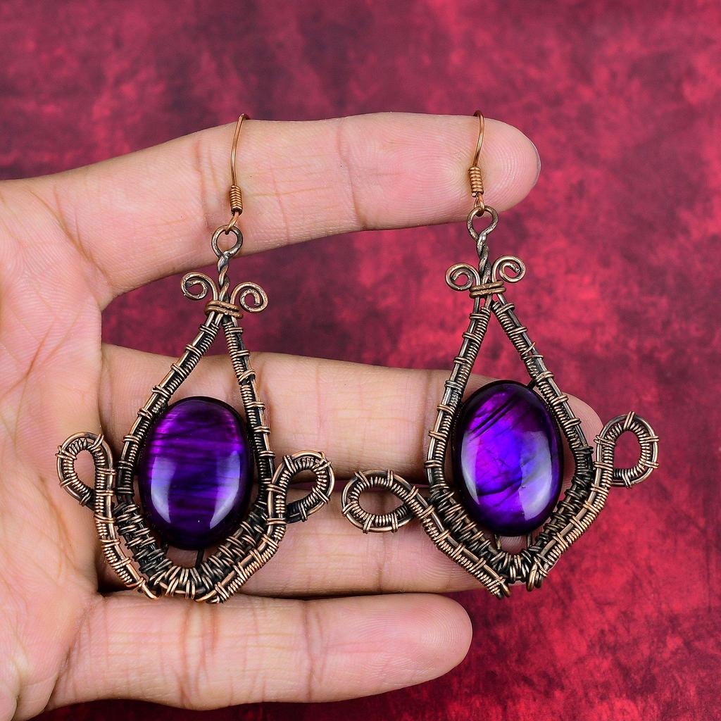 Purple fire labradorite earring copper wire wrapped earring gemstone earrings handmade wire wrapped jewelry anniversary gifts copper jewelry