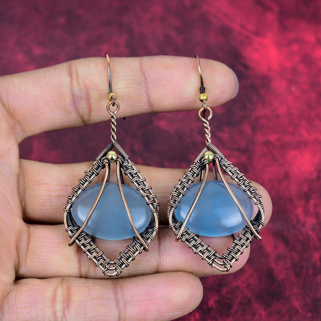 Aquamarine earrings copper wire wrapped earring handmade copper jewelry natural gemstone earrings gifts for wife wire jewelry dangle earring