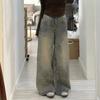 Vintage high street wide-leg jeans, horn high-waisted splicing, new loose and thin design, floor-mopping pants trendy