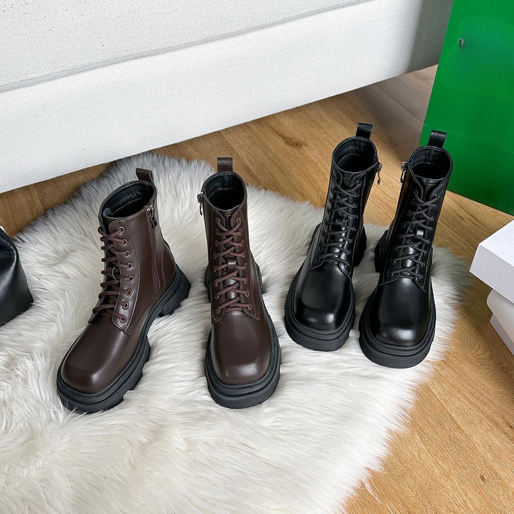 Höhenverlängernde Damen Herbst- und Winter Neue Plateau Stiefeletten Damen Seitenreißverschluss Motorradstiefel Damen Kurze Stiefel Damen