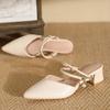 Sandalen Damen 2025 Sommer neue spitze Einzelne Schuhe dicker mittlerer Absatz halbe Spange hoher Absatz französische Tasche Kopf Hausschuhe