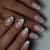 Aufdrücknägel Kurz Mandel Falsche Nägel Französisch Vollabdeckung Acryl Falsche Nägel Blumendesign Falsche Nägel für Frauen und Mädchen