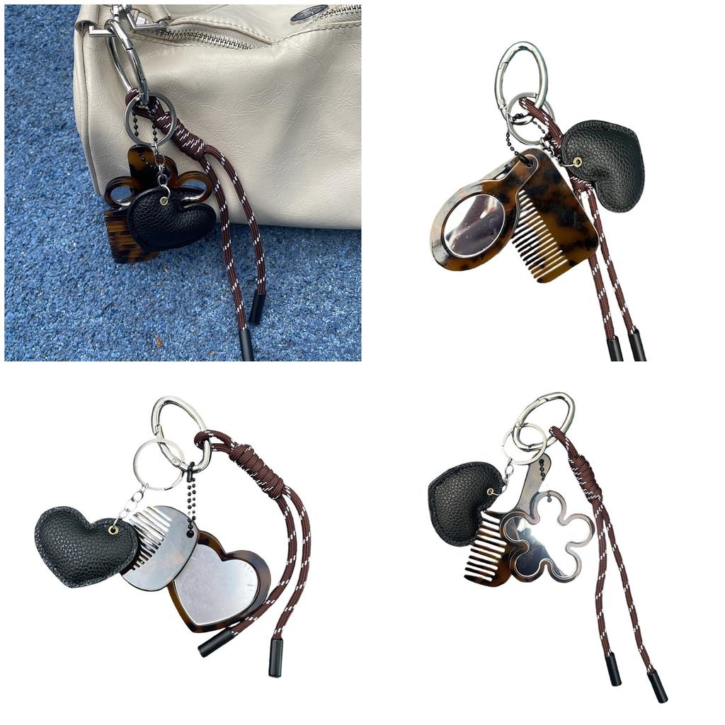 Kreative Designs Multifunktionaler Schlüsselanhänger Kamm Spiegel Tragbares Haarwerkzeug und Kosmetikzubehör für den täglichen Gebrauch