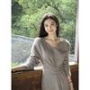 Design sweater dress women's autumn and winter new waist and thin temperament gray knitted long skirt