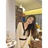 Off-white inner sweater skirt autumn new V-neck retro design long knitted dress