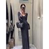 High-end exquisite dress early autumn new temperament v-neck horn sleeve slim and thin long dress versatile knitted skirt women