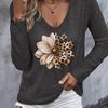 Frühlings- und Herbst V-Ausschnitt 3D Leopard Floral bedruckte T-Shirts Modische lässige langärmelige Damen-T-Shirts