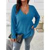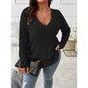 GMXIA Autumn and Winter Solid-color Pluse-size Women's Top, V-neck Long-sleeved, Fringed Brushed T-shirt, Loose Pullover