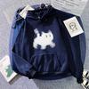 Pixel Cat Print Hoodie for Woman High Quality Hooded Long Sleeve Sweatshirt fall winter Girls Daily Casual Sporty Loose Pullover