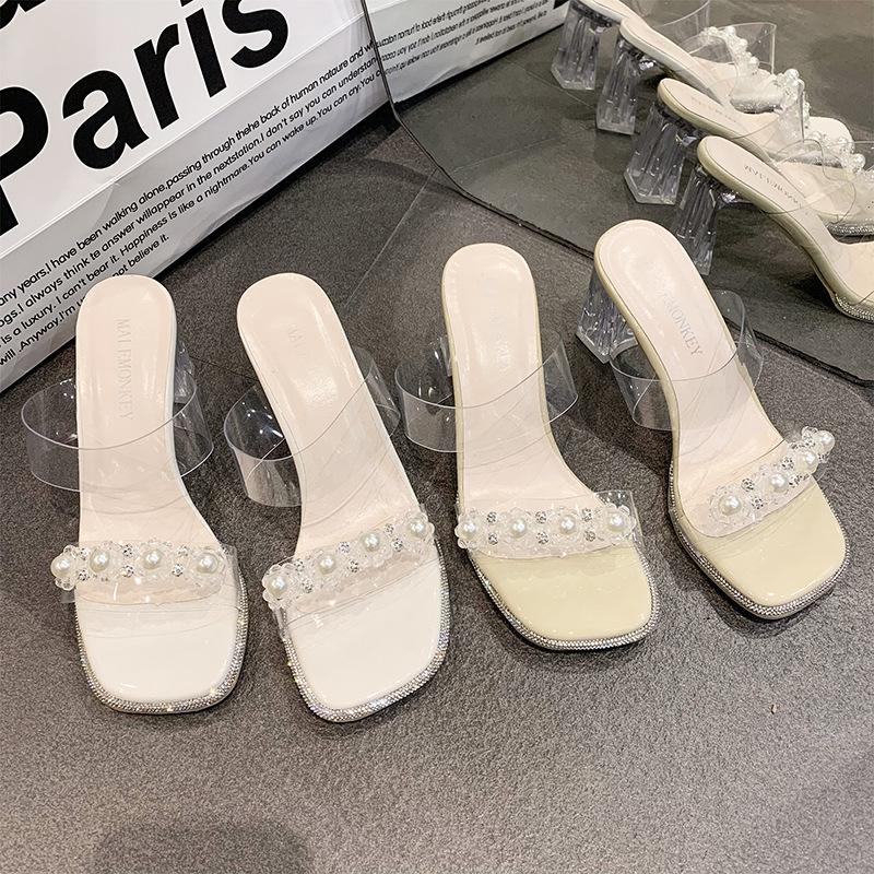 Transparente Sandalen Damen High Heels Sommer 2025 neue Damenschuhe High Fashion vielseitig Kristall dicker Absatz coole Pantoletten
