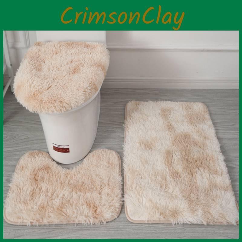 Dye Non Tie Slip Mat Fluffy Plush Bathroom Toilet Seat Cover Carpet 3 Set Piece