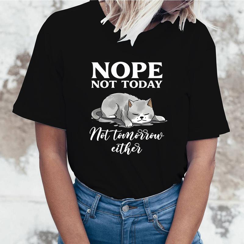 Fashion Funny Nope Not Today Cat Printed T-Shirts Women Summer Casual Short Sleeve T-Shirts Round Neck Tops