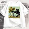 Van Goghs Katze Kunstdruck T-Shirt Lustige Grafik T-Shirts Baumwolle Trendy Sommer Locker Kurzarm T-Shirt Herren Damen Harajuku Top