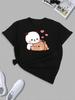 Cartoon Print Round Neck T-shirt Short Sleeve Minimalist Playful Design Fashion Illustration Tee Comfortable Casual Fit harajuku