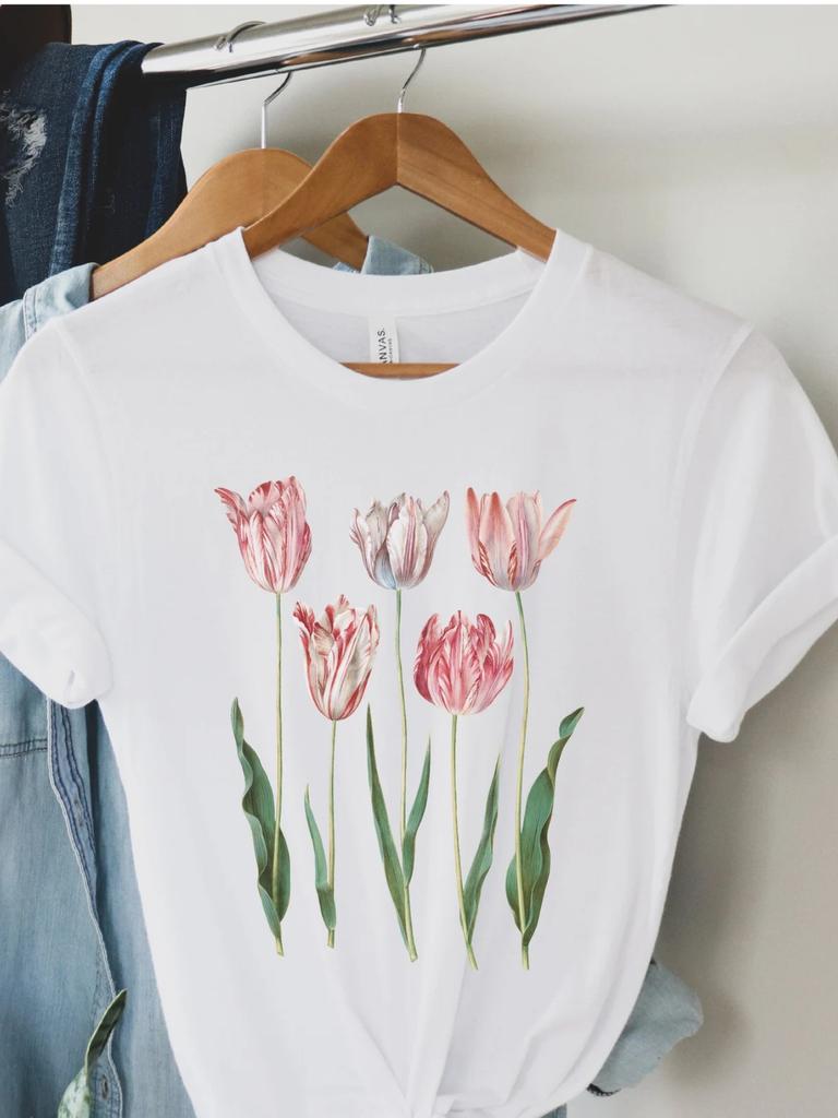 flowers and plants Printed T-shirts short sleeves fashion Women's tops Comfortable Casual Fit Minimalist Style Fashion Statement