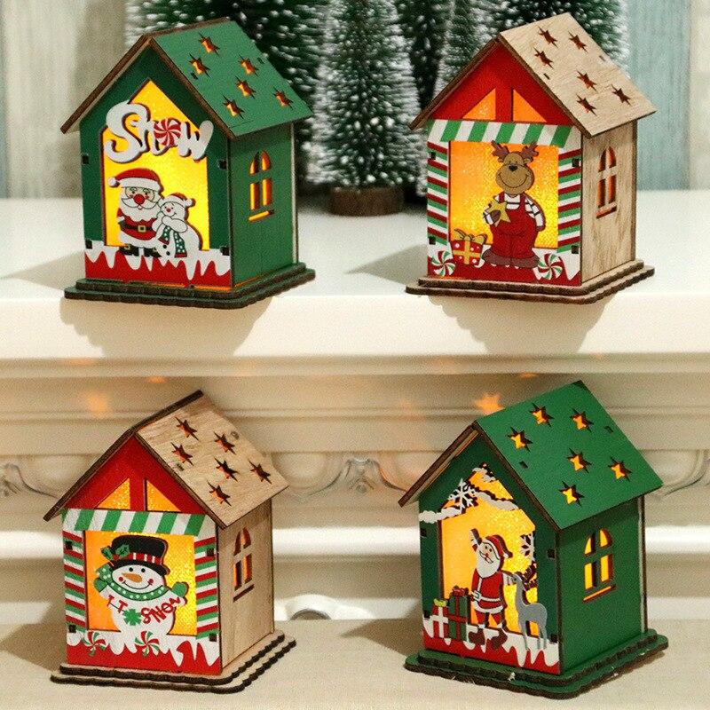 Cartoon LED Licht Schneehaus Holzornament Weihnachtsbaumdeko DIY Hängeanhänger Weihnachten Neujahrsparty Zuhause Navidad Deko
