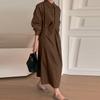 ZANZEA Damen Umlegekragen Langarm Casual Long Shirt Kleid