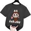 2025 New Labubu Children's T-shirt LABUBU Holding Milk Tea Pattern Girl Round Neck Short Sleeved Casual Versatile Clothing