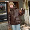 Damen Kurze Glänzende Kapuzenwinddichte Verdicken Warme Winterjacke