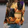 Herbst 3D Halloween Schwarze Katze & Kürbis Bedruckte Sweatshirts Modische Lässige Sport Langärmlige Damen Kapuzensweatshirts