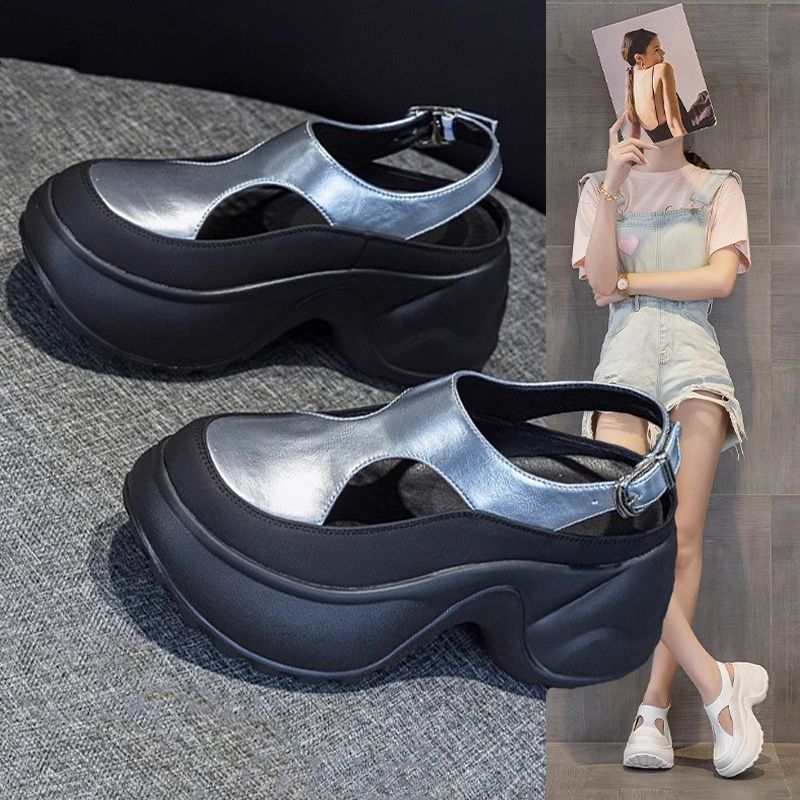 Plateausandalen Damen 2025 neuer Sommer Oberbekleidung um 8 cm erhöht, Füße zeigend, kleine Leute mit Röcken, lässiger Damenschuhtrend