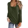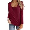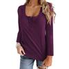 Damen Casual Mode U-Ausschnitt Knopf Einfarbig Langarm Oberteil