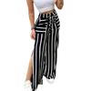 Damen Neue Gestreifte Hose Hochgeschlitzt Elastischer Bund Schlitz-Tasche Weitbeinige Hose